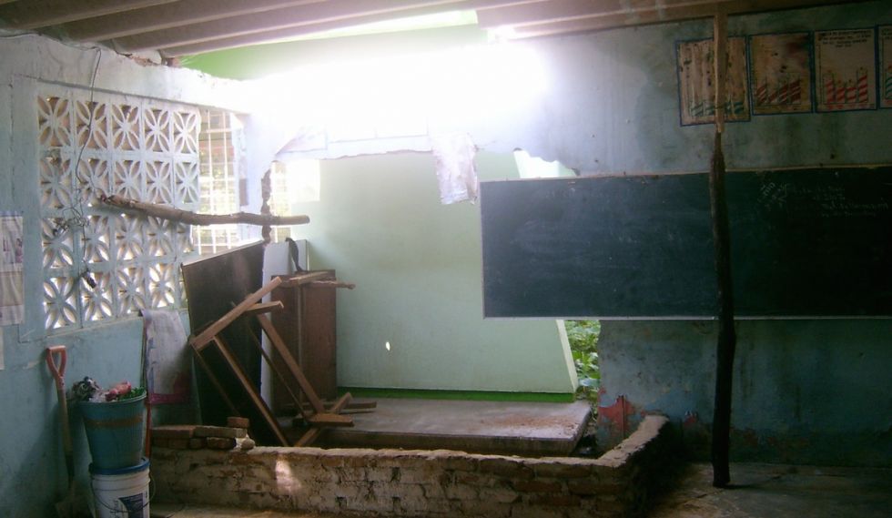 ’El techo de la Escuela (un inmueble construido hace 50 años) puede venirse abajo en cualquier momento y provocar una tragedia. Los niños y los maestros están en un serio peligro’, dijo el director del plantel, el profesor Javier Peláez Ramírez.