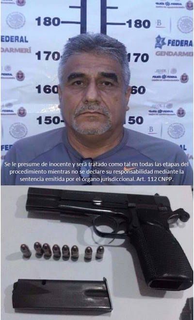 Ante estas circunstancias, el sujeto quien dijo llamarse José Luis Encalada López, de 60 años de edad, accedió de manera voluntaria a la revisión, de este modo, los uniformados encontraron dentro de las pertenencias de individuo, un arma de fuego calibre 9 mm, abastecida con 8 cartuchos útiles.