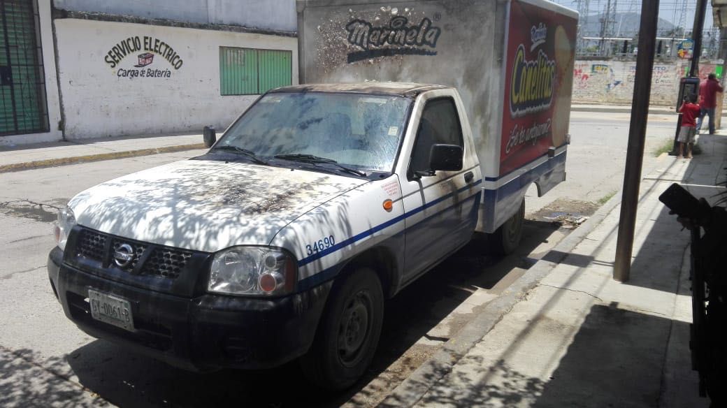 Casi paralelamente fue incendiada una camioneta repartidora de la empresa Marinela, en la periferia de la ciudad.