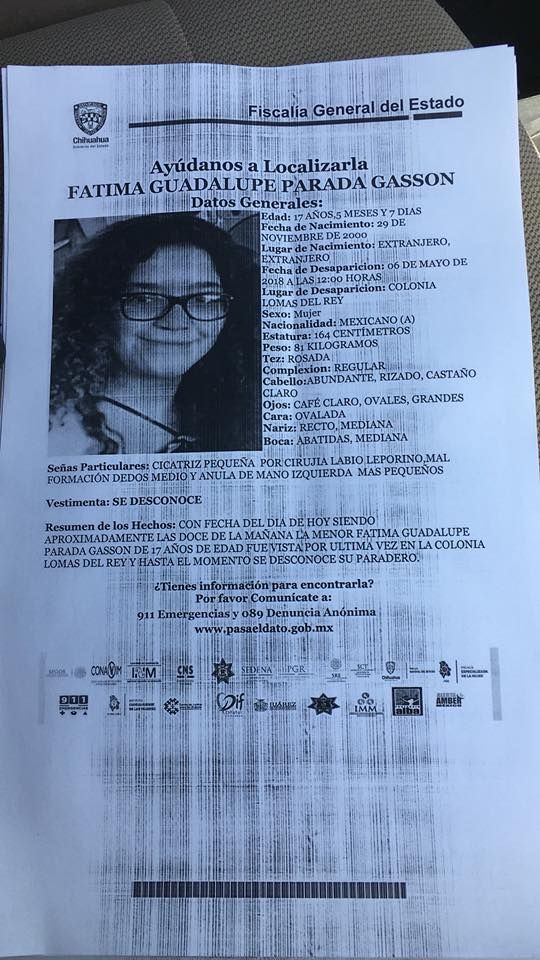 La Fiscalía de Chihuahua ha emitido la alerta, de la desaparición de la hija de la periodista Guadalupe Parada, quien colabora en el Periódico Norte, mismo donde escribía Miroslava Breach.