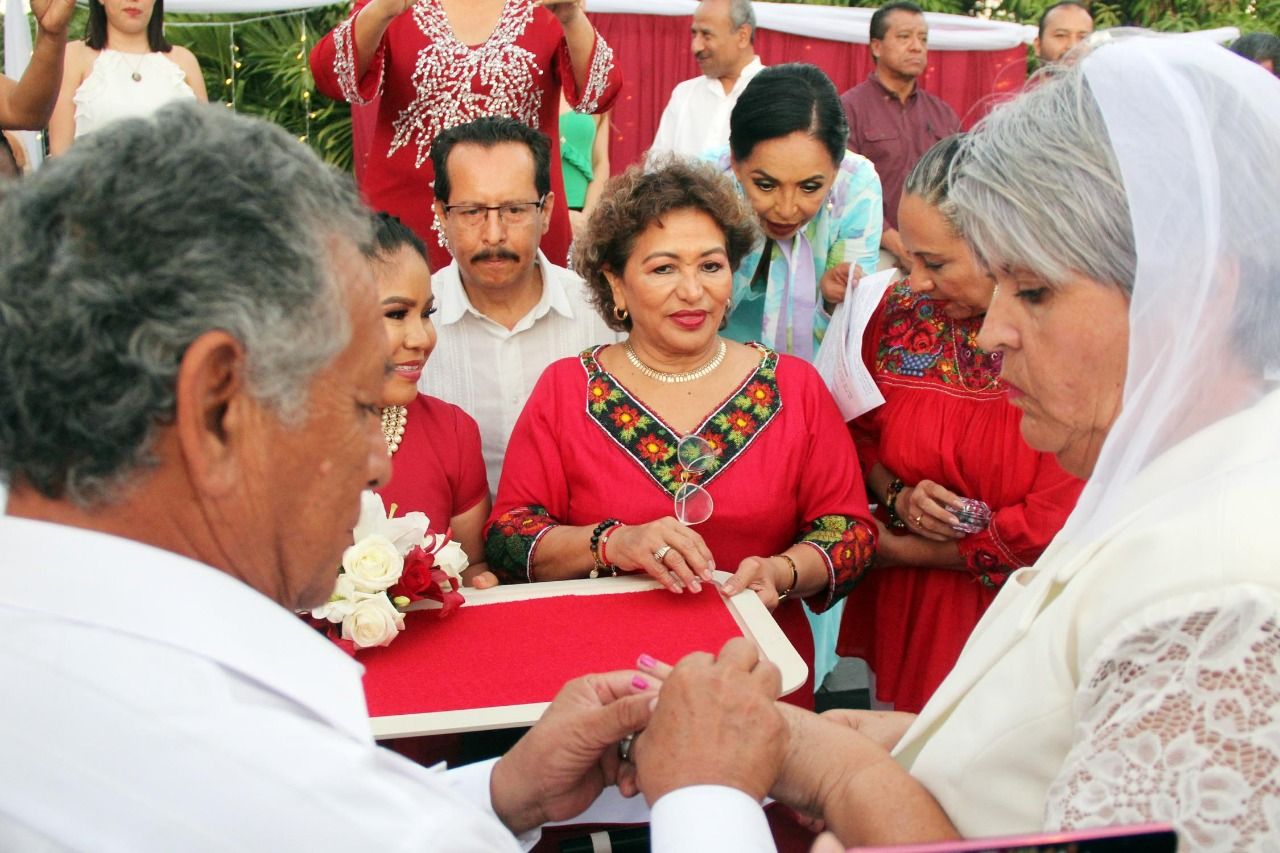 Por su parte, la titularde Sedesol, Milly Ramírez Olmedo, informó que de las 250 parejas, una es de origen extranjero y 12 indígenas: ’Hoy tenemos parejas que vienen a formalizar su unión, personas que llevan más de 50 años viviendo juntos y que hoy vienen a cerciorar, a transformar sus familias con amor’.