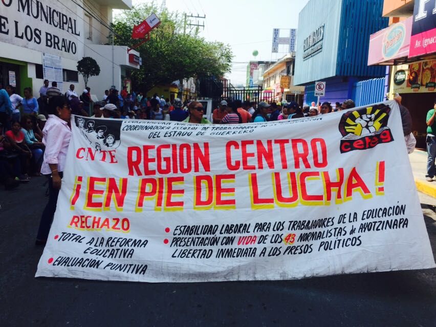 Alrededor de cien integrantes de la Coordinadora Estatal de los Trabajadores de la Educación en Guerrero (CETEG) realizaron un mitin en la avenida Ignacio Ramírez, en contra de la Reforma Educativa y la evaluación docente.