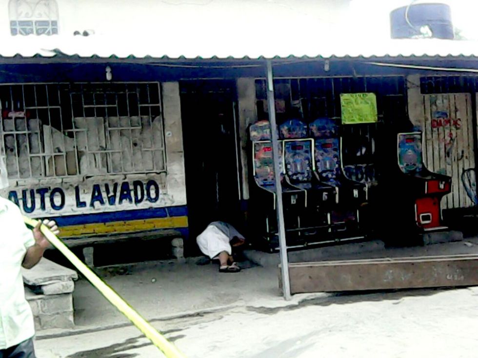 El cadáver quedó tirado en la puerta de una miscelánea que se ubica dentro del citado negocio, donde el personal encargado hace los cobros por el servicio.