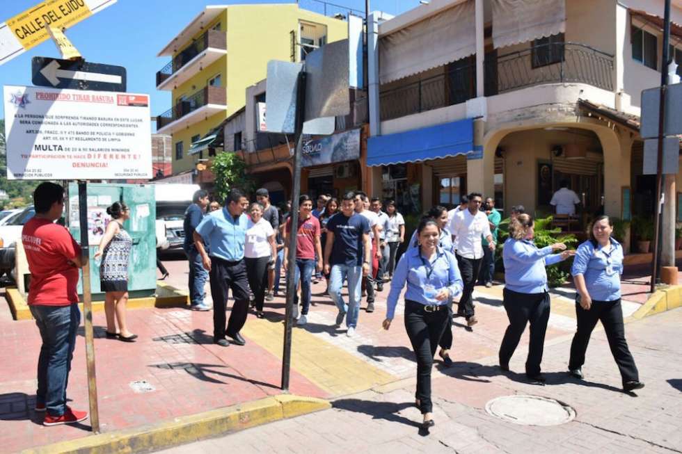 En las instalaciones de Palacio de Gobierno, los trabajadores evacuaron las oficinas, con la participación del gobernador Héctor Astudillo Flores y el secretario de Protección Civil, Marco César Mayares Salvador.