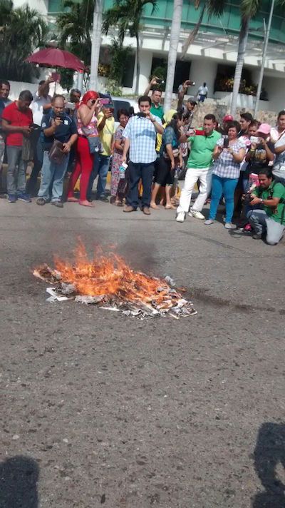 Este domingo los cetegistas marcharon por las calles de esta ciudad y pintarrajearon con consignas la Puerta 3 de Casa Guerrero y protestaron ante la Delegación de la Procuraduría General de la República (PGR), al sur de esta ciudad, y la Comisaría Regional de la Policía Federal, en la avenida de la Juventud, con consignas en contra de la Reforma Educativa.