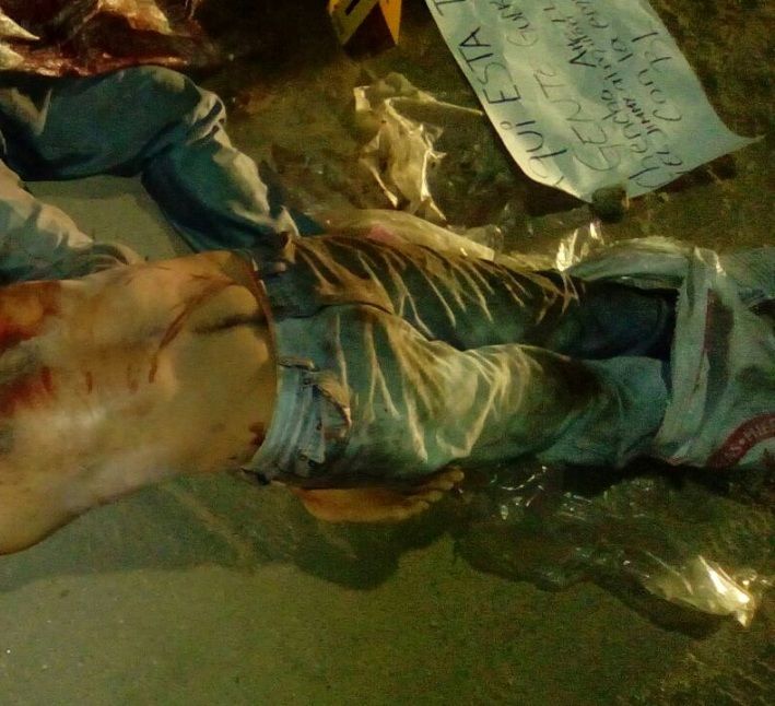 A unos metros de ellos les fue dejada una cartulina blanca con la siguiente leyenda: ’AQUI ESTA TU GENTE GUERO Chencha. Atte: EL CREMAS EL JIMMY al millón con la empresa BL’.