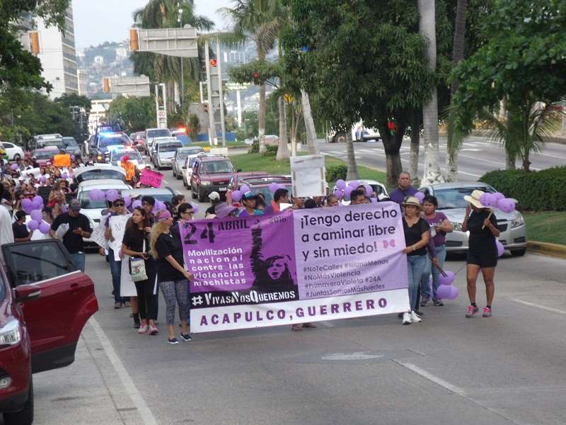 En el marco de la Movilización Nacional Contra las Violencias Machistas que se celebró en el país este domingo 24 de abril, en Acapulco diversas organizaciones de mujeres también marcharon por la Costera Miguel Alemán, desde la Glorieta de la Diana Cazadora hasta el Zócalo, donde culminó con un mitin y la postura de cada agrupación.