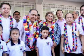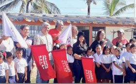 Inauguran la alcaldesa porteña Adela Román; el gobernador Héctor Astudillo y el delegado único de la Federación, Pablo Amílcar Sandoval, reconstrucción de la Primaria ’Morelos’, en Puerto Marqués