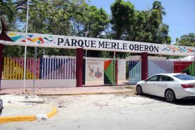 Supervisan el coordinador de los Servicios Públicos, Juan Carlos Manrique y la regidora Mayra Reyna, trabajos en el parque ’Merle Oberón’