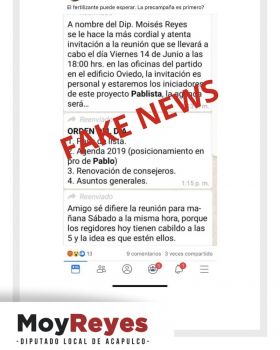 Aclara el diputado de Morena que esa convocatoria nunca existió y que es producto de intereses externos que pretenden manchar la actividad del delegado federal