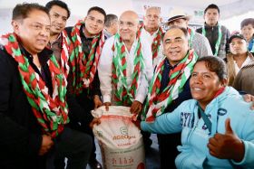 Participa el delegado único del gobierno federal en el estado, Pablo Amílcar Sandoval; distribuyen 400 toneladas de insumo a 3 mil productores de la Sierra