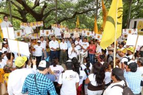 Integrantes de la coalición Por Guerrero al Frente, hacen pega de calcas en automóviles y entregan propaganda