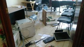 Los estudiantes de Ayotzinapa ingresaron al inmueble y destrozaron cristales, puertas, muebles, equipo, cámaras de vigilancia, lanzaron bombas molotov y realizaron pintas