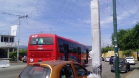 Personal del nuevo sistema de transporte, colocó las señalizaciones de lo que serán las paradas en la periferia de Acapulco, por lo que la gente ya no podrá subirse a las unidades en cualquier punto