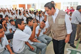 Inaugura el alcalde Evodio Velázquez dos aulas de la secundaria Seis ’Tierra y Libertad’ y realiza un recorrido de supervisión de la construcción de una nueva red de drenaje en la zona
