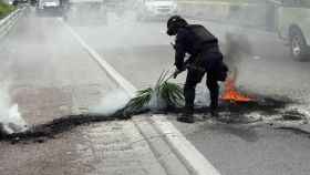 Unos cincuenta estudiantes de Ayotzinapa protestaron en el marco de los 23 meses de la desaparición de 43 de sus compañeros en Iguala