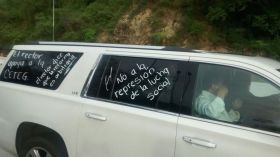 Alrededor 80 maestros mantenían obstaculizada la caseta de La Venta, en Acapulco, donde detuvieron una camioneta de lujo color plata, donde viajaba el líder de la Máxima Casa de Estudios
