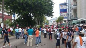 Ahora, los profesores obstruyeron los dos carriles de la principal avenida del puerto y los accesos al centro comercial Galerías Diana
