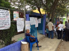 Desde temprana hora los paterfamilias colocaron carteles en contra de la Reforma Educativa en la Primaria matutina y vespertina ’Juan Escutia’ y ’Lázaro Cárdenas’, respectivamente