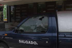 Sujetos armados causaron daños a dos carrozas estacionadas a las afueras del negocio, así como a puertas y ventanas de cristal