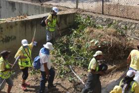 **Supervisa el primer edil porteño trabajos de limpieza en cauces, presas gavión y desarenadores, previo a temporada de lluvias