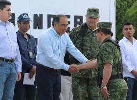 **El gobernador de Guerrero fue invitado de honor a la toma de posesión del general brigadier, Diplomado de Estado Mayor, José Francisco Terán Valle, como nuevo comandante del Mando Especial Iguala, que comprende 22 municipios en la entidad