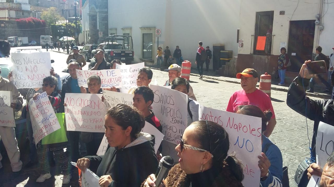 Habitantes de Guanajuato capital no soportaron más el estado de indefensión en el que se encuentran a causa de la falta de seguridad que han tenido en el gobierno municipal panista, que decidieron aceptar la invitación del regidor de Morena Oscar Edmundo Aguayo Arredondo y protestar por robos y asaltos que se cometen ahora con mayor intensidad, exigiendo la destitución del titular de la Secretaría de Seguridad Ciudadana, Gral. José Santos y la revocación de mandato del presidente municipal Alejandro Navarro.