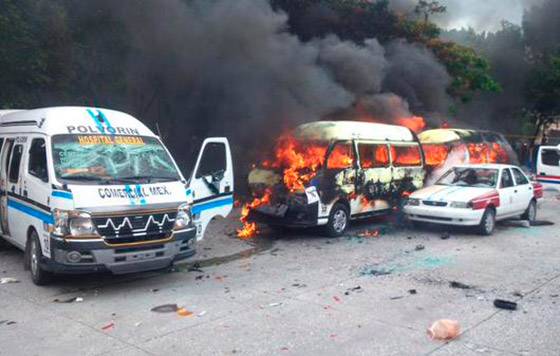 La actividad de la turba formada por la delincuencia organizada, en el Ayuntamiento indígena de Zitlala, en la comunidad de las Trancas, Filiberto Cuautitlán, Director de Tránsito Municipal, circulaba a bordo de un vehículo tipo Bora con placas de la Ciudad de México, lo bajaron y delante de los habitantes del lugar lo acribillaron a balazos para después darse a la, no sin antes quemar transportes de servicio público de las diferentes rutas que prestan el servicio colectivo en el lugar.