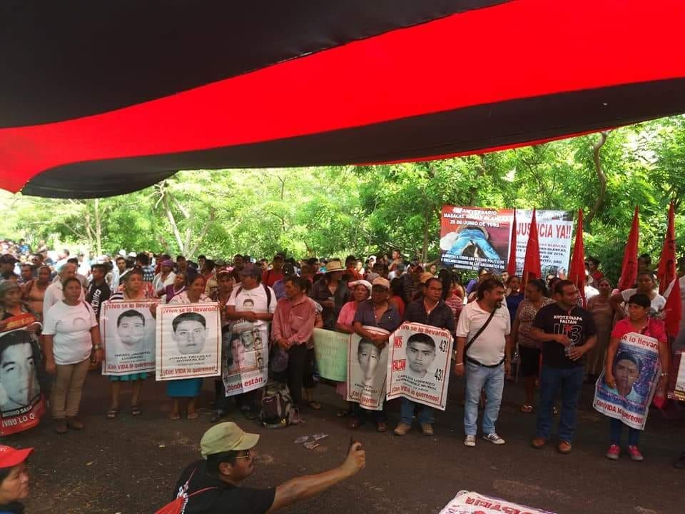 En el acto de este jueves reivindicaron su lucha social y demandaron que se haga justicia por el asesinato de esos 17 campesinos. ’No hay justicia, no se atiende a los deudos y el Estado sigue cometiendo crímenes y excesos, como la desaparición de 43 muchachos en Iguala’.