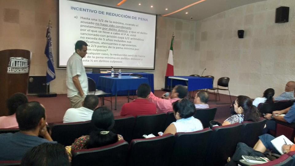 Siguen los cursos del Consejo de Juristas del Estado de Guerrero, quienes ya se encuentran en la tercera etapa de su preparación en materia de Juicios Orales, del nuevo Sistema de Justicia Penal Acusatorio, por lo que en esta semana, tuvieron como expositor al juez de Control y Enjuiciamiento Penal en Iguala, Hércules Aureoles Guadarrama, quien abordó el tema "Soluciones alternas y formas de terminación anticipada del proceso", lo cual resultó interesante para los litigantes inscritos en el programa.