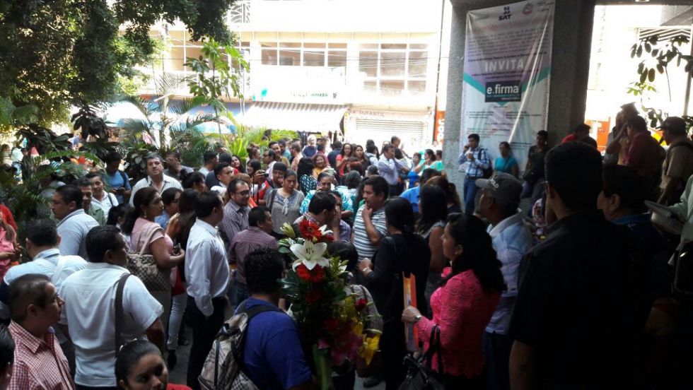 Cerca del mediodía unos 150 cetegistas que integran la delegación D III (16) 02 tomaron las instalaciones del edificio de Finanzas y en acción simultánea bloquearon las calles aledañas, Ignacio Zaragoza y 16 de Septiembre.