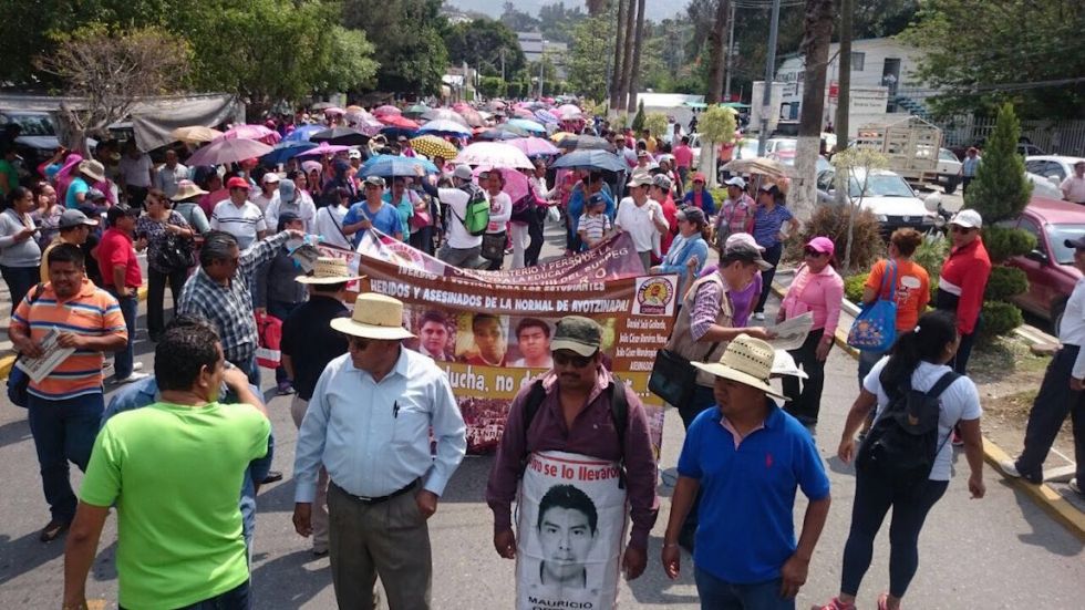 La marcha partió de las instalaciones de la Secretaría de Educación en Guerrero (SEG) -ex Ineban- en la avenida Rufo Figueroa, donde desde hace varios meses mantienen un plantón indefinido en apoyo a los 43 normalistas desaparecidos de Ayotzinapa.