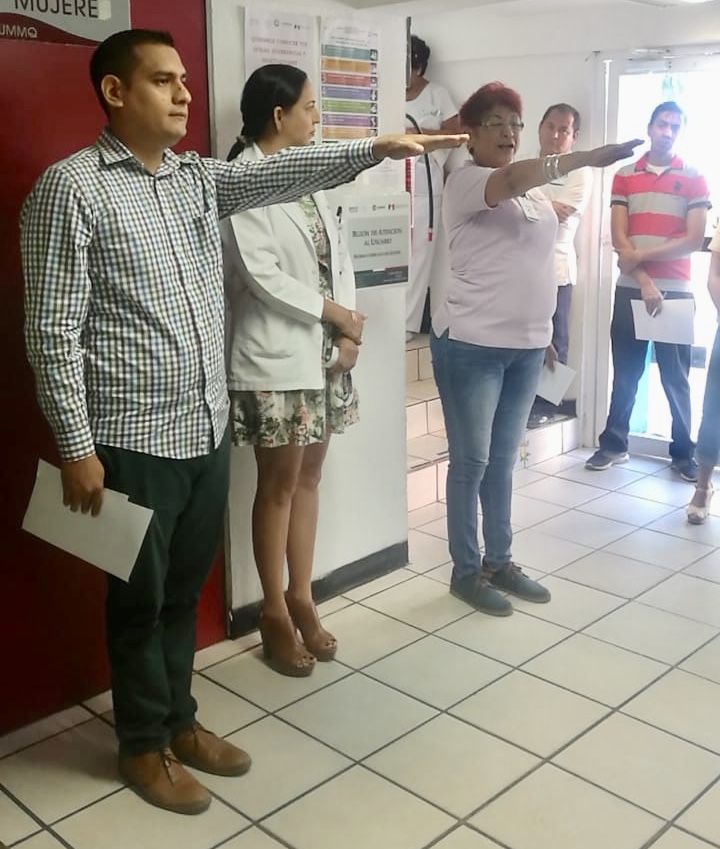 Al rendir protesta ante Roxana Tapia Carbajal, directora de la Unidad Médica Quirúrgica de Hogar Moderno, Yaír García se comprometió a estar al pendiente de las quejas y sugerencias que las y los usuarios hagan a dicha clínica, con el propósito de que sean atendidos de manera amable y óptima.